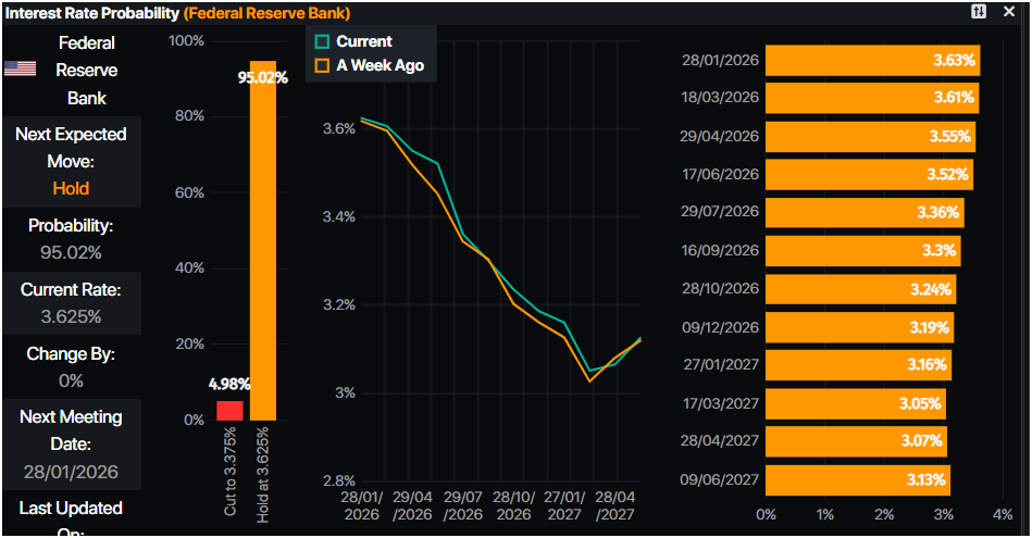 - 在这种背景下,投资者预计美联储将在2026年降息56个基点,依据Prime Market Terminal的数据。