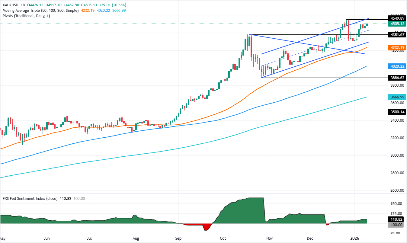 技术分析:黄金价格突破$4,500,瞄准历史高点