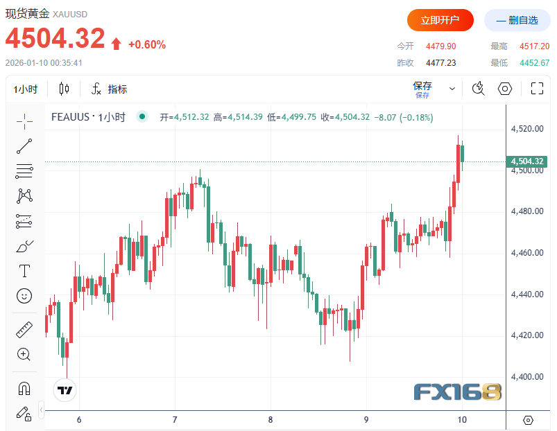 非农报告公布后,现货黄金一度跌至4457美元/盎司一线,随后持续自低位反弹,并在消费者信心数据公布后刷新日高至4,517.20美元/盎司,本周累计涨幅预计约为3.8%。金价曾于12月26日触及历史高点4,549.71美元/盎司。