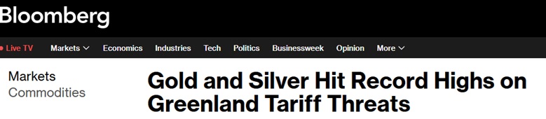 贵金属价格今年大幅攀升,此前2025年曾出现暴涨。美国逮捕委内瑞拉领导人并加倍威胁要吞并格陵兰岛,推动了贵金属价格上涨。
